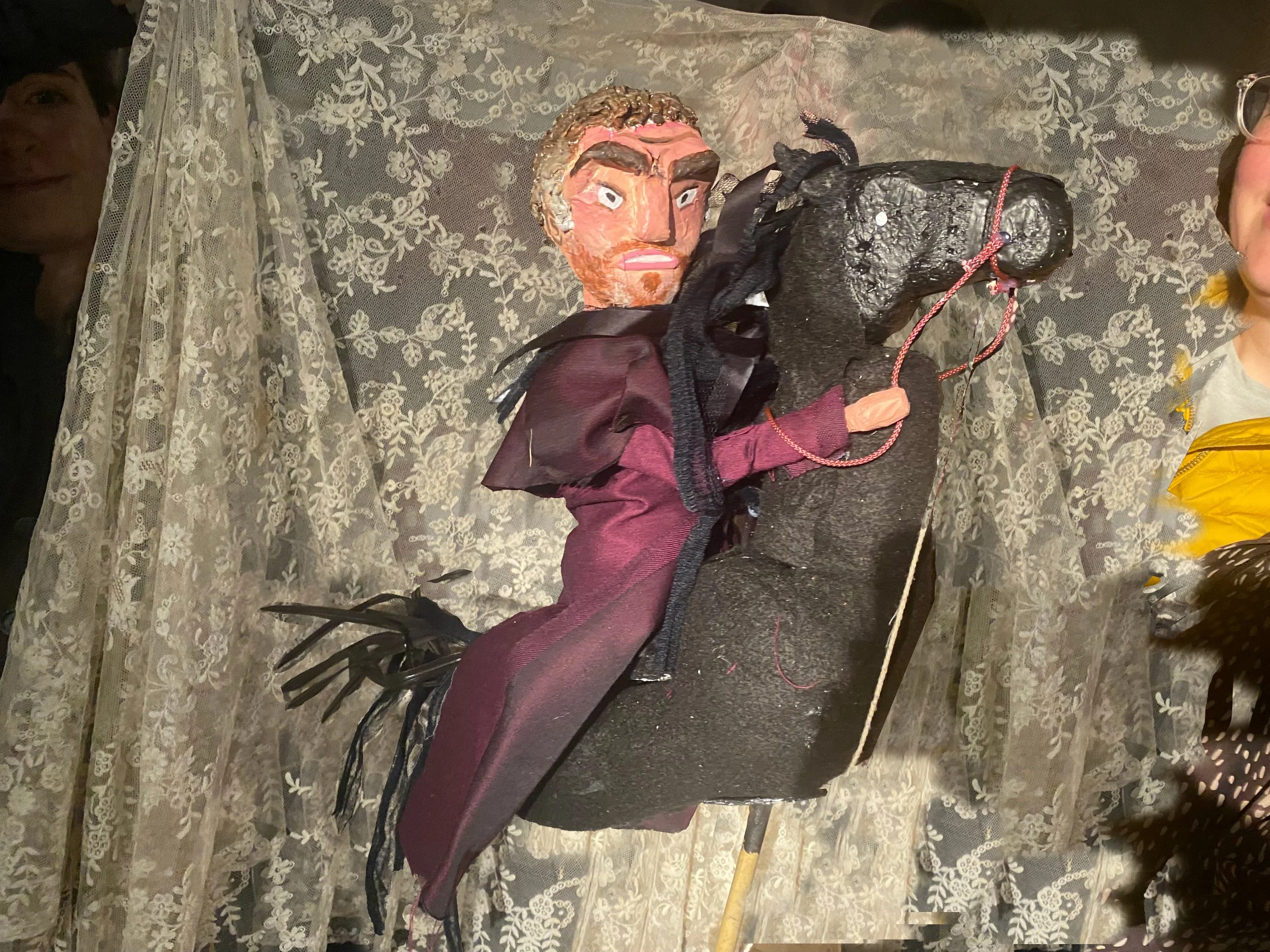 The Hound of The Baskervilles (Red Rope Theatre, 2023)- Mini-Me character puppet. Articulated horses neck, head and riders arms to simulate galloping horse. Dir- Roisin McCay-Hines. Designer- Rhiannon Binnington.